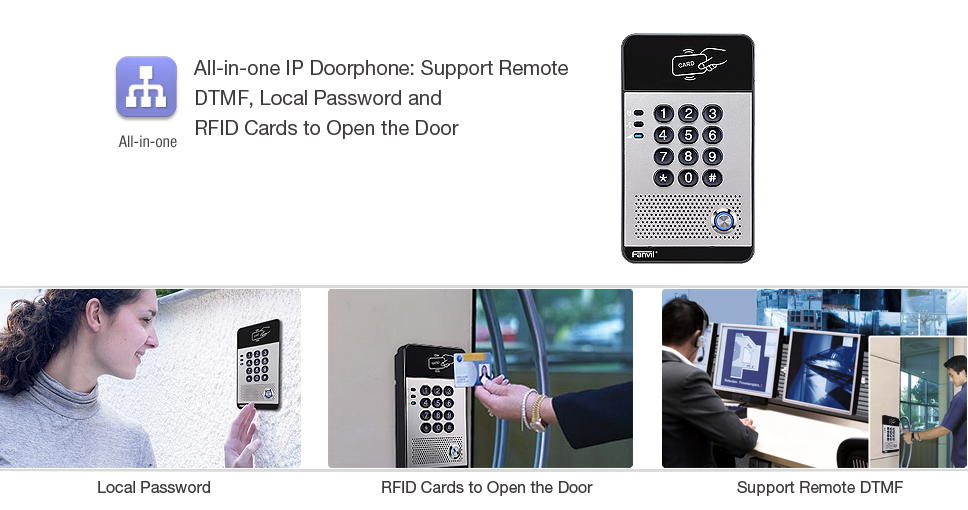 FANVIL i20S — бюджетный аудиодомофон с поддержкой SIP. Устройство обладает тройной функциональностью (All-in-one): доступ по коду, по звонку, по IC/RFID-карте. Домофон оснащен программируемой кнопкой и индикаторами статуса. Встроенный спикерфон с функцией подавления эха обеспечивает высокое качество голосовых коммуникаций без использования трубки как для контроля доступа, так и для оповещения или в режиме интеркома. Простой и понятный web-интерфейс позволяет настраивать и управлять домофоном в режиме онлайн. Совместим с большинством популярных IP-АТС и коммуникационных платформ.